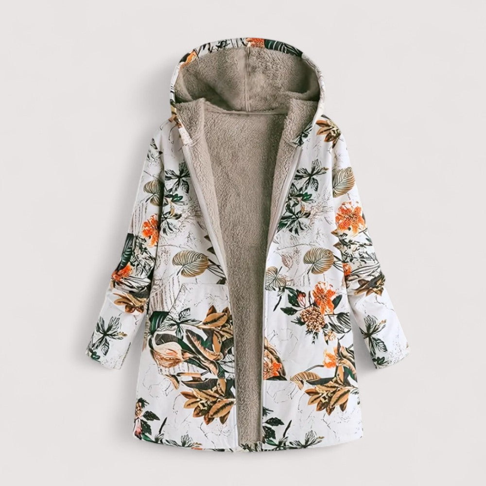 Estilosa y funcional: Capucha, cremallera y amplios bolsillos ofrecen protección práctica, mientras que el estampado floral añade un toque de moda a cualquier conjunto.